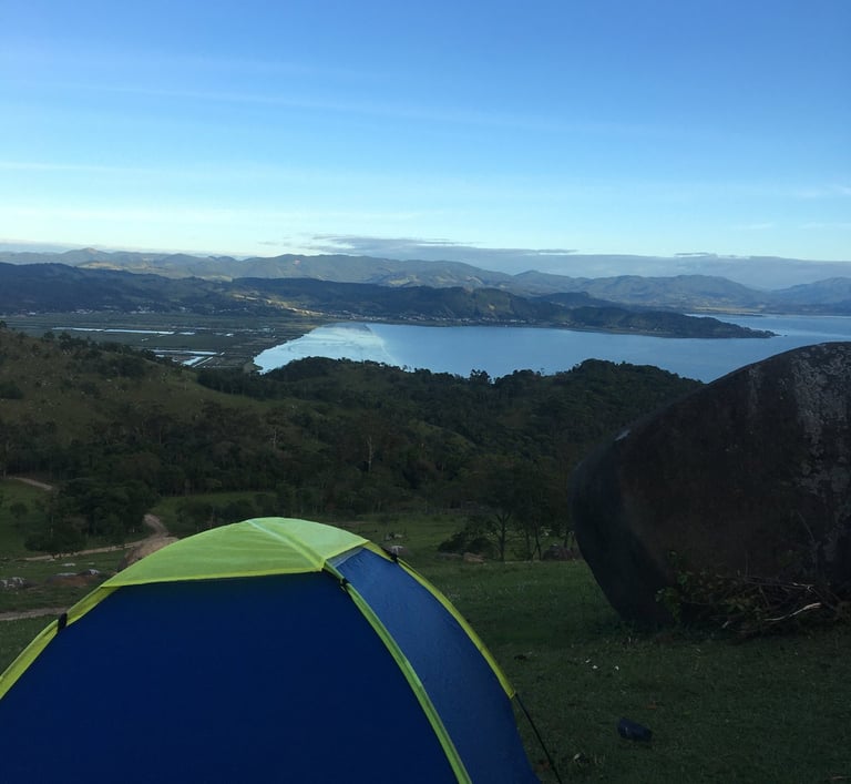 No Morro do Bananal em Santa Catarina, fica localizado o Mirante Laguna: um lugar para desconectar e curtir a vista, ideal para acampar no final de semana ou feriado. Para acessar o local e acampar, é necessário pagar uma taxa por pessoa, confirme antes de ir. A estrada que leva ao mirante era de areia, com terreno bem íngreme no momento em que fui. No local que optamos por montar acampamento, não havia estrutura alguma.