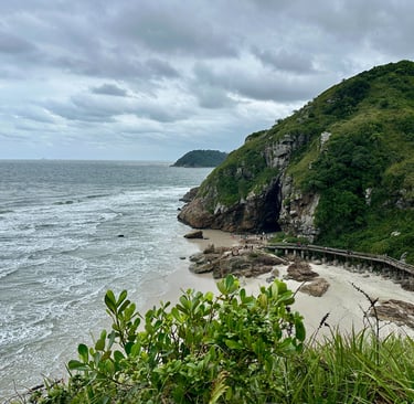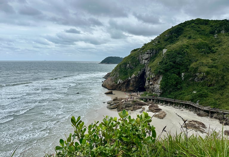 Outra opção é a trilha de Nova Brasília a Encantadas (ou vice-versa), passando pela Praia Grande, Praia do Miguel, Morro do Sabão até chegar na Gruta das Encantadas, ponto mais famoso do vilarejo. O caminho tem aproximadamente 5km e é importante estar atento aos horários em que a maré sobe, garantindo uma travessia segura entre Praia Grande e Praia do Miguel. Sugiro se informar com os moradores locais sobre a maré antes de iniciar as trilhas citadas acima. Caso não seja possível a trilha, é possível realizar o trajeto de barco (necessário conferir os horários no terminal).