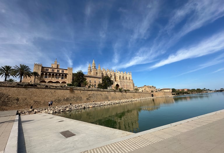 Catedral de Palma: Uma das catedrais góticas mais impressionantes da Europa, com vitrais deslumbrantes e vista para o mar. Ao lado fica o Palácio de La Almudaina, antiga residência real, com belos jardins.