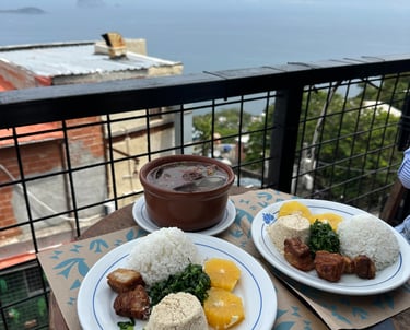 Se for ao Mirante do Arvrão próximo ao horário de almoço, super recomendo a feijoada que é servida no restaurante, simplemente incrível! No local também há shows e música ao vivo, de acordo com a programação do estabelecimento. Ao visitar o Vidigal, lembre-se de que você está entrando em uma comunidade: respeite os moradores, evite fotografar pessoas sem permissão e apoie o comércio local sempre que possível. A experiência é rica, única e mostra um lado do Rio cheio de autenticidade.
