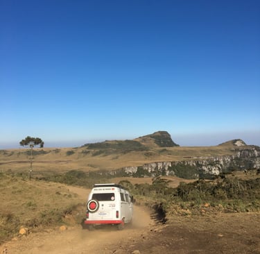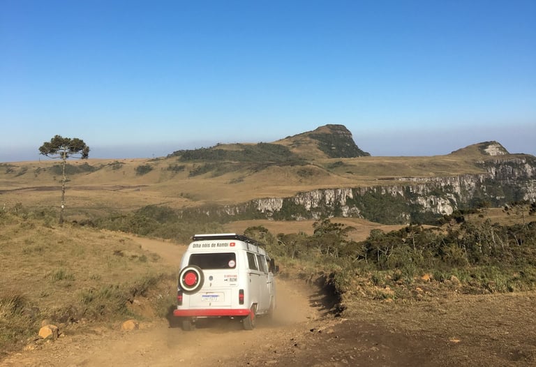 Outra opção é visitar o Canion Espraiado, onde é recomendado subir a estrada de veículo 4x4. Chegando no topo, a equipe aluga botas de borracha para quem tiver interesse para realizar a trila - se estiver frio, recomendo 100%, afinal, dependendo da época, há espaços em que é inevitável afundar nos gramados. Neste Canion há um famoso balanço na borda, que proporciona belas fotos, mas também frio na barriga.